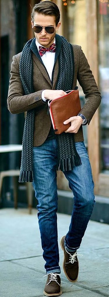 Giày da chính hãng nâu + quần jeans + áo len
